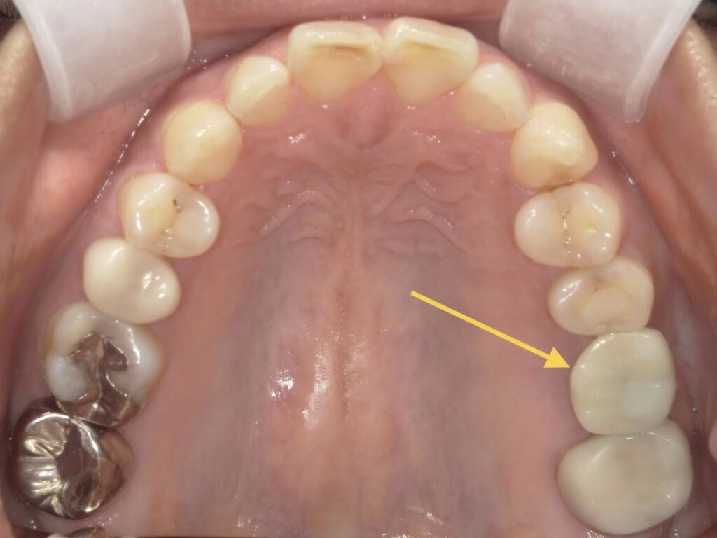 施術内容 | 右上第一大臼歯欠損部にインプラントを埋入し、ジルコニアクラウンを被せてあります |